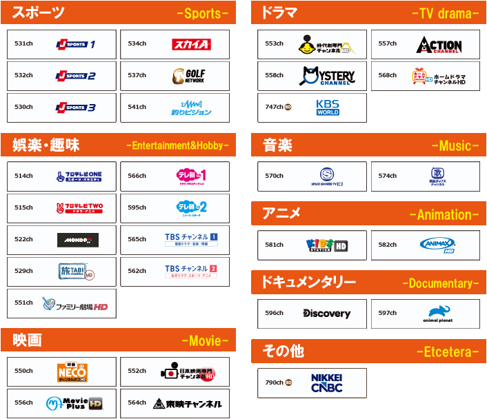 STB機器の設置で充実のテレビライフ!31チャンネルの豊富なラインナップ。
