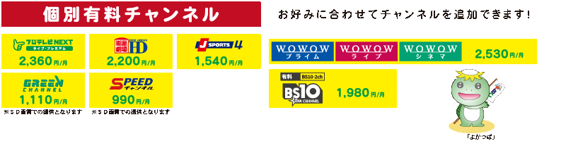 ※利用料金にはNHK衛星放送受信料は含まれておりません。NHKの衛星放送受信契約をお願いいたします。